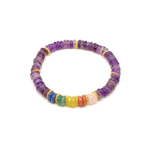 Ametiszt ásvány karkötő 5 korong köves díszítéssel 6×2 mm