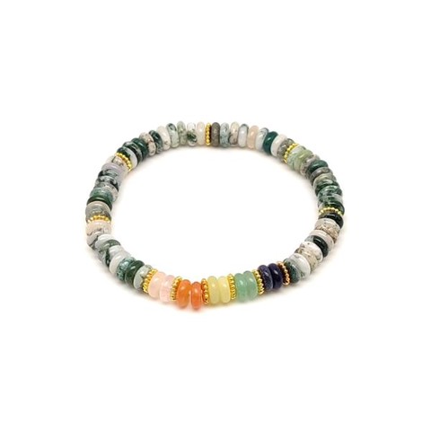 Achát fa ásvány karkötő 5 korong köves díszítéssel 6×2 mm