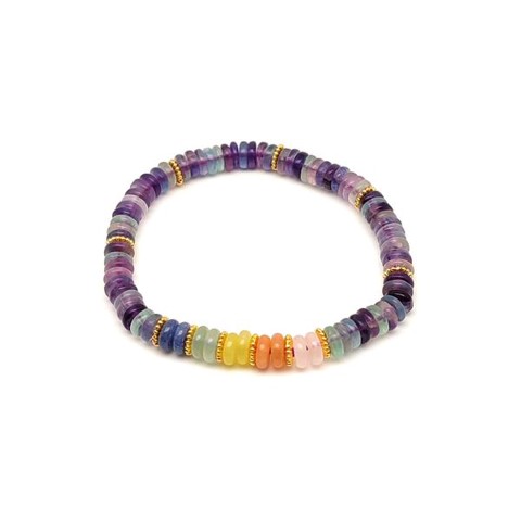 Fluorit ásvány karkötő 5 korong köves díszítéssel 6×2 mm