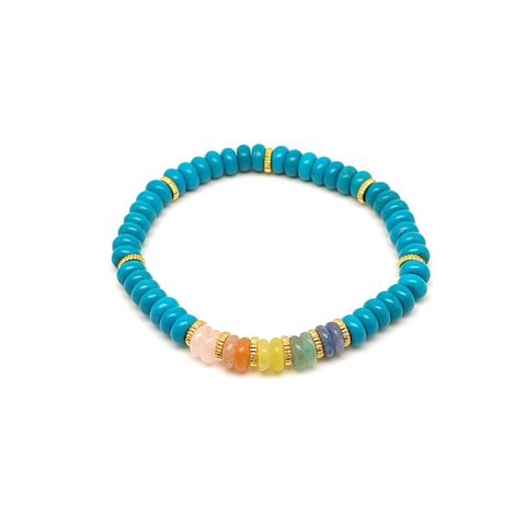 Kék színű howlit ásvány karkötő 5 korong köves díszítéssel 6×2 mm