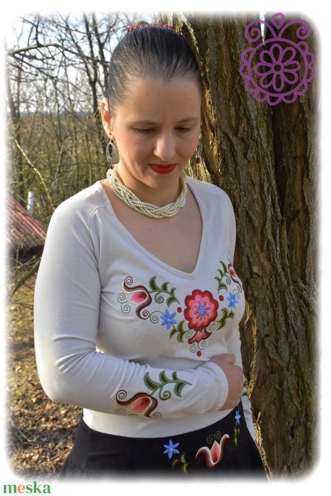 - Anyaga: rugalmas pamut, gépi hímzőcérna, varrócérna