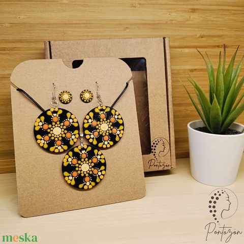 Pontozott ékszerszett - citromsárga és narancs színekkel