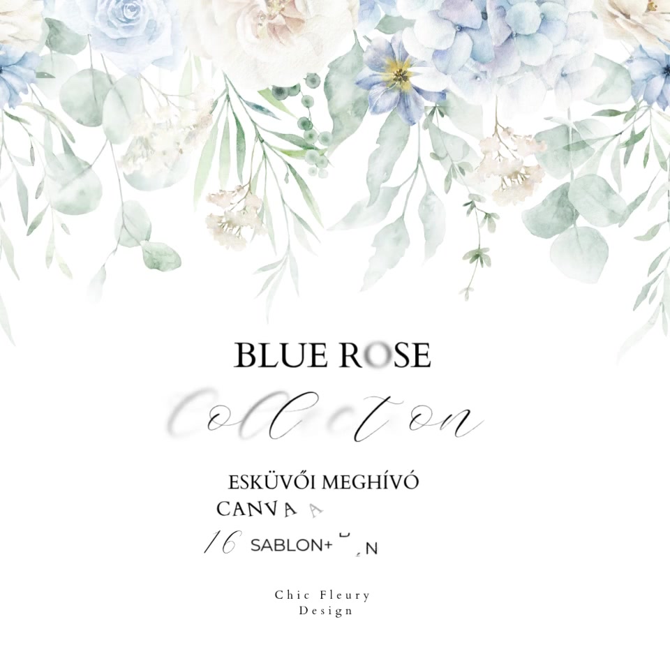 Esküvői meghívó digitális Canva alap sablon csomag, Blue Rose Collection