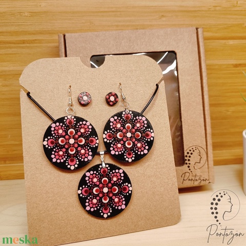 Pontozott ékszerszett - bordó és rózsaszín árnyalatokkal