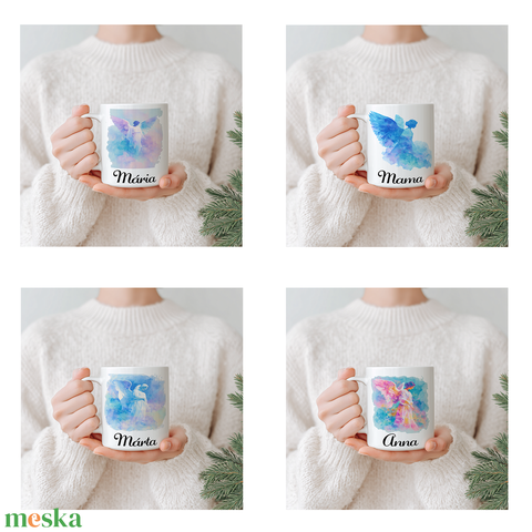 Névre szóló Angyalos bögre – vízfesték hatású karácsonyi minta, 3 dl