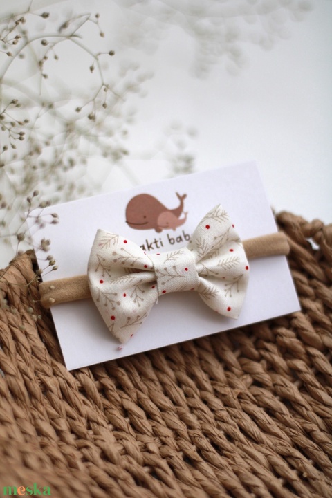 Ekrü fenyőág midi masnis elasztikus fejpánt , baba fejpánt, hajpánt