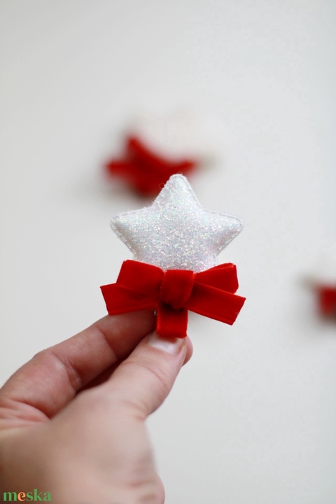 Glitteres csillag piros masnival hajcsat, hajcsat