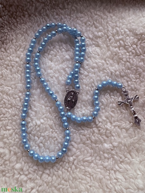 Egyedi gyöngyös rózsafüzér kék – személyre szabható névvel