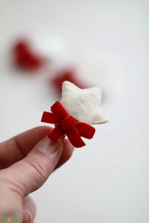 Mini szőrmés csillag piros masnival hajcsat, hajcsat
