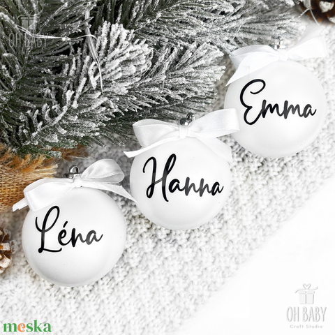 Ajándékozz egy különleges, névre szóló karácsonyi gömböt szeretteidnek, családtagjaidnak, de akár barátoknak, tanároknak is tökéletes választás lehet. Feliratok lehetnek pl. nevek, Apa, Anya, Nagyi, Papa, 2025, Első Karácsony és bármi más szöveg amit szeretnél, de maximum 15 karakter! Az ár egy darab karácsonyi gömböt tartalmaz, akasztóval,felirattal és masnival. Extraként vásárolható fehér doboz ami 3db- 5db gömbhöz ajánlott (14,5x16,5x6,5cm). Az egyedi gömb jellemzői: Méret: 6cm átmérő Anyag: műanyag, törésbiztos Színek: Matt fehér/Fényes arany/Matt arany/Fényes piros/Matt piros itt tudod megnézni a színeket: https://www.meska.hu/p5437834-karacsonyi-gomb-nevre-szolo-karacsonyi-gomb-egyedi-felirattal-egyedi-karacsonyi-gomb-karacsonyi-disz-ajandeknak-gomb Ha keresel még más ajándék ötleteket, nézz szét a boltomba, és akkor egy rendeléssel megoldhatsz több karácsonyi ajándékot :) https://www.meska.hu/shop/OhBaby Ha sürgős a rendelés, tedd a kosárba az elsőbbségi díjat is: https://www.meska.hu/p5588941-elsobbsegi-dij A rendelés menete: 1, Válaszd ki a darabszámot. 2, Tedd a kosárba a választott terméket. 3, A megjegyzésbe írd meg az adatokat (felirat vagy név amit a gömbre szeretnél) 4, 1 napon belül megkapod a látványtervet Meska üzenetben, kérlek figyeld, majd erősítsd meg. 5, A megerősítés után az elkészítési idő 3-4 munkanap, plusz a szállítási idő (általában 2-3 munkanap, ünnepi időszakban több nap is lehet). 6, A termék feladásáról emailben kapsz értesítést. ⋆ Kérlek, vedd figyelembe, hogy a színek minimálisan eltérhetnek a te képernyődön látható terméktől. ⋆ A termék rendelésre készül, ezért csere, visszaküldés és lemondás nem lehetséges. ⋆ Termékeim egyedi elképzelés alapján készülnek, kizárólag személyes használatra. ⋆ A grafikáim, designjaim semmilyen része nem másolható, nem terjeszthető, nem értékesíthető tovább semmilyen formában!