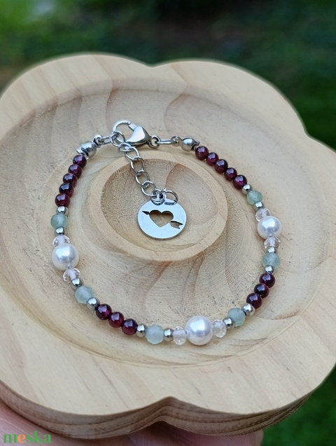 Gránát – aventurin – kagylógyöngy kapcsos ásványkarkötő