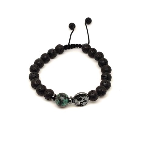 Bazalt életfa karkötő Afrikai Türkiz gyönggyel 8 mm