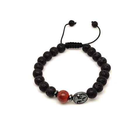 Bazalt életfa karkötő Vörös Jáspis gyönggyel 8 mm