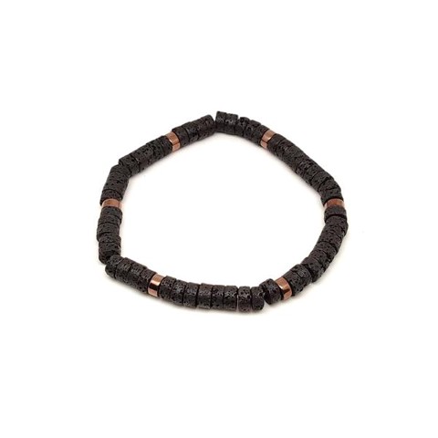 Bazalt ásvány karkötő bronz korong köztessel 6–7 mm