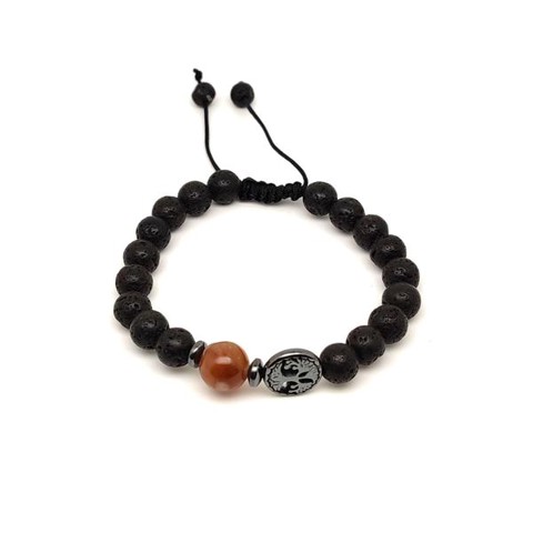 Bazalt életfa karkötő Achát Indiai gyönggyel 8 mm