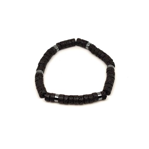 Bazalt ásvány karkötő hematit korong köztessel 6–7 mm