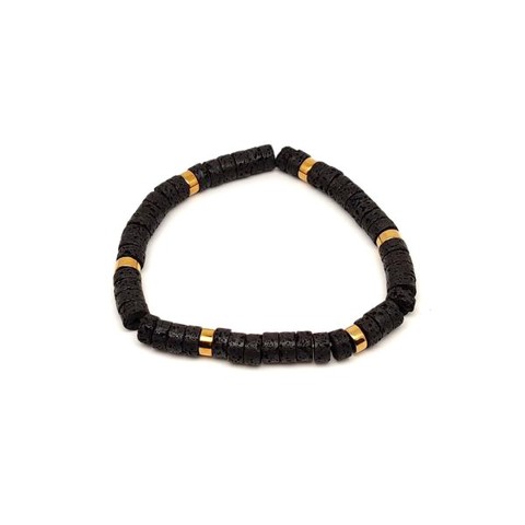 Bazalt ásvány karkötő arany korong köztessel 6–7 mm