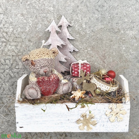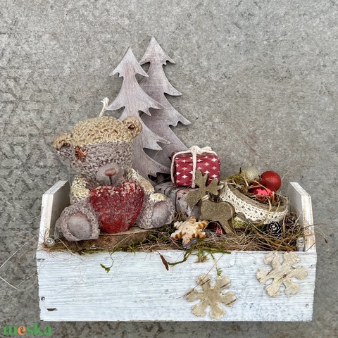 MACI karácsonyi asztaldísz, ládika, gyertya