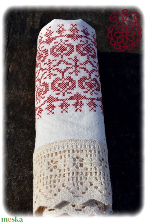- Anyaga: varrócérna, pamutcsipke, pamut hímzőfonal, házivászon