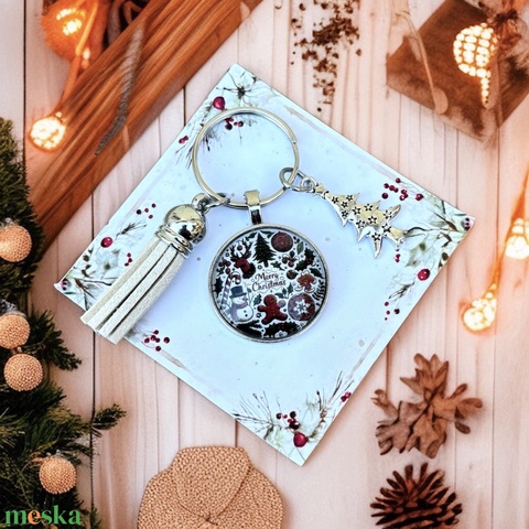 Üveglencsés fém bojtos karécsonyi kulcstartó ajándékozásra kész celofánba csomagolva 5664918