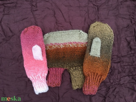 Bézs-fáradt rózsaszín és zöld-barna páros kesztyű