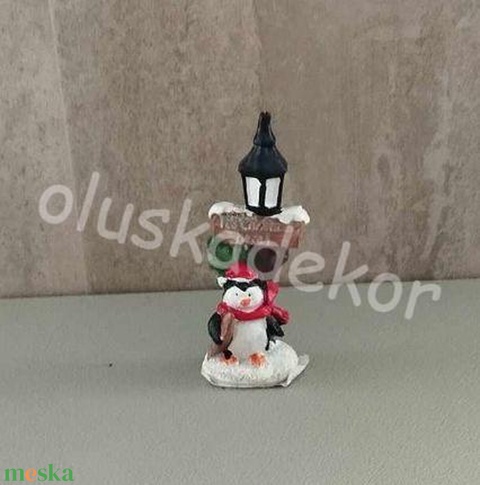 Téli falu, téli jelenet, pingvin kandeláberrel - 9x3cm