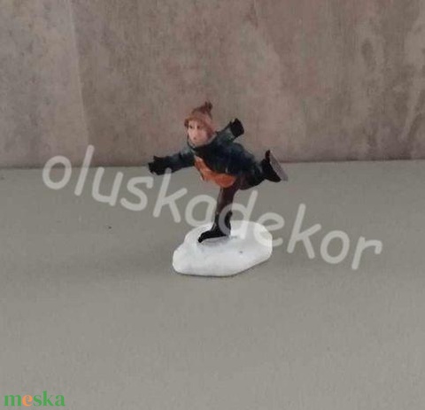 Téli falu, korcsolyázó kisfiu - 5,5x5,5cm