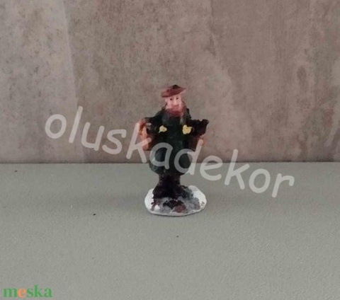 Téli falu, kosarat cipelő néni - 5,5x3cm