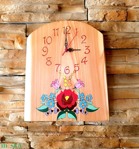 Kalocsai mintás fából készült falióra
