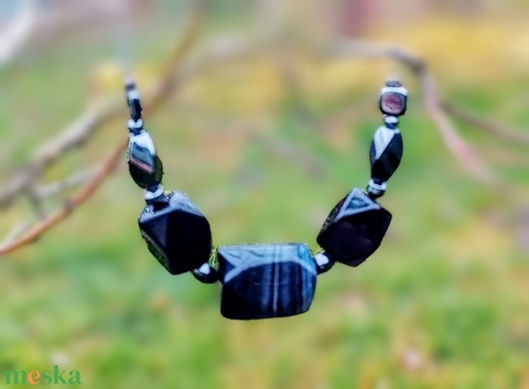 Onix, achát és hematit kövekből nyaklánc, nyakék