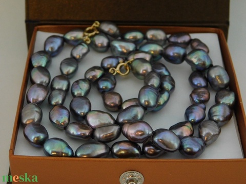Gyöngyház Fekete/Multikolor Barokk Gyöngy Nyaklánc És Karkötő Szett 14 K Arany 10 mm-es Gyöngyökkel