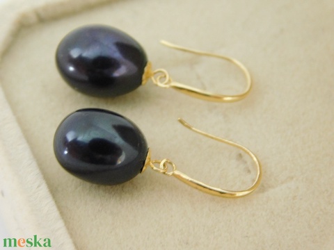 Gyöngy 18 K Arany Lógós Fülbevalók Gyönyörű Fekete 10 mm-es Gyöngyökkel