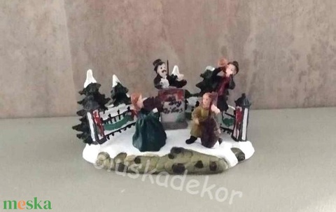 Téli falu, téli jelenet, karácsonyi dekorációs figura, zenekaros, 12x7cm