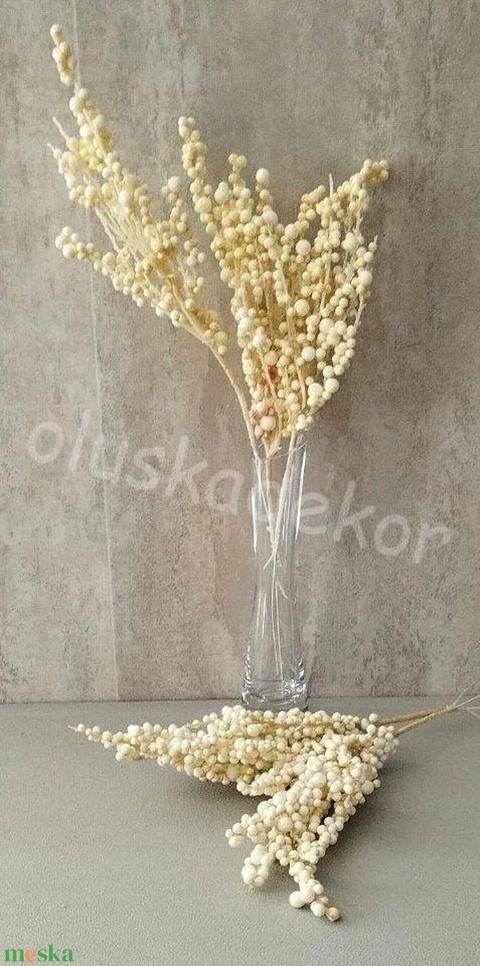 Apró bogyóság, törtfehér karácsonyi dekorációs mű növény, 34cm