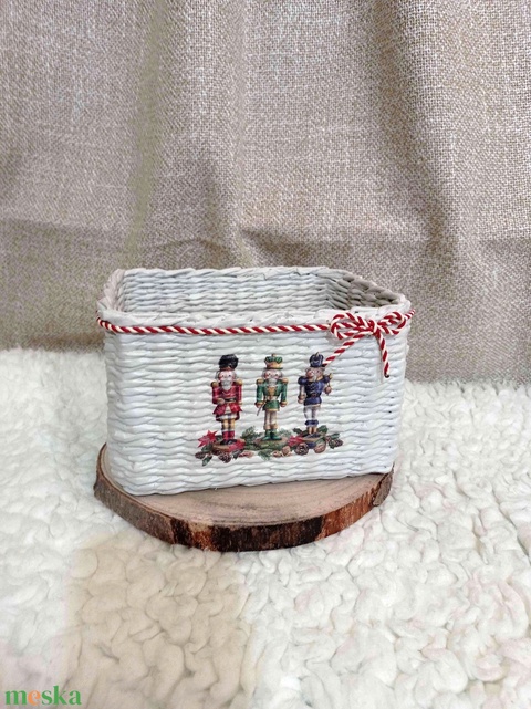Papírfonott karácsonyi tárolókosár diótörő motívummal