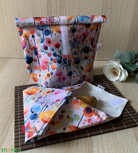 Nyári virágos újraszalvéta-uzsonnás zsák szett