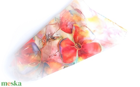 Kézzel festett, művészi és hordható sálak tiszta selyemből. Időtálló érték, természetesen.