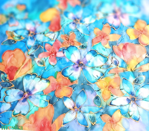 - Technika: selyemfestés