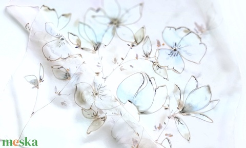 Kézzel festett, művészi és hordható sálak tiszta selyemből. Időtálló érték, természetesen.