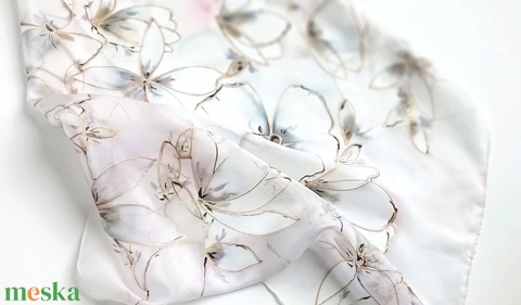 Kézzel festett, művészi és hordható sálak tiszta selyemből. Időtálló érték, természetesen.