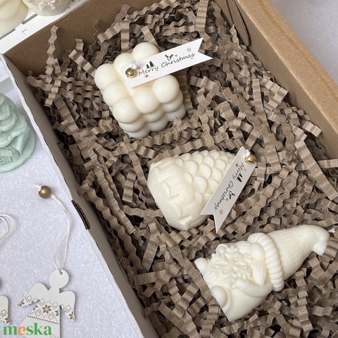 Modern Karácsony – kézműves natúr gyertya szett ajándékdobozban