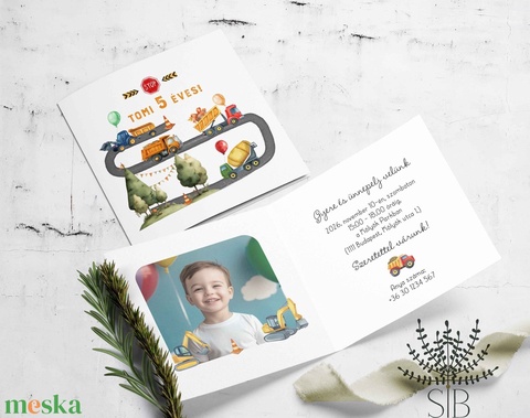 Járműves, munkagépes gyermek születésnapi meghívó