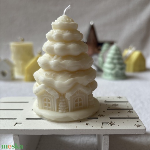 Téli falucska – fenyőfa formájú kézműves gyertya