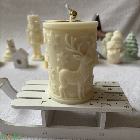 Téli szarvas – kézműves gyertya dombornyomott mintával
