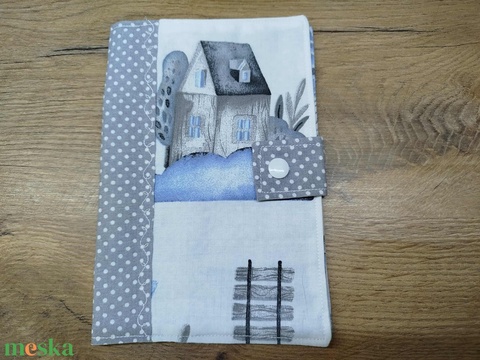 textil gyermek egészségügyi kiskönyv borító házikó mintával