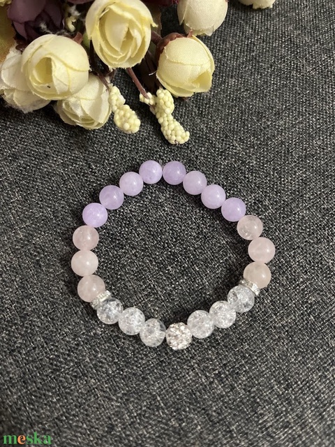 Ásványkarkötő rózsakvarc hegyikristály angelit