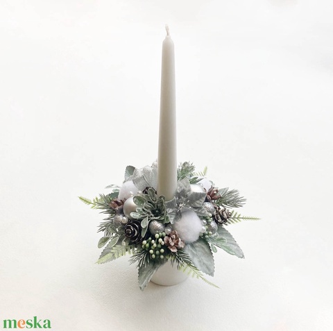 Gyertyás karácsonyi asztaldísz ezüst hamvas