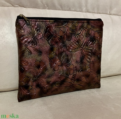 Rózsaszín-arany neszesszer/ tároló szitakötő és lepke mintával