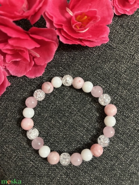 Ásványkarkötő rózsakvarc, hegyikristály, jade, zebra jáspis