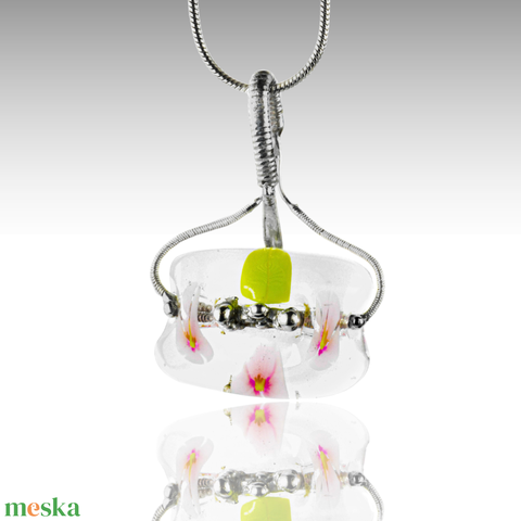 Cseresznyevirág millefiori üveg szitakötő nyaklánc